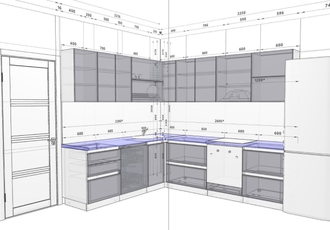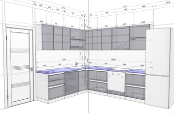Проект кухни с размерами и рекомендациями по расположению розеток