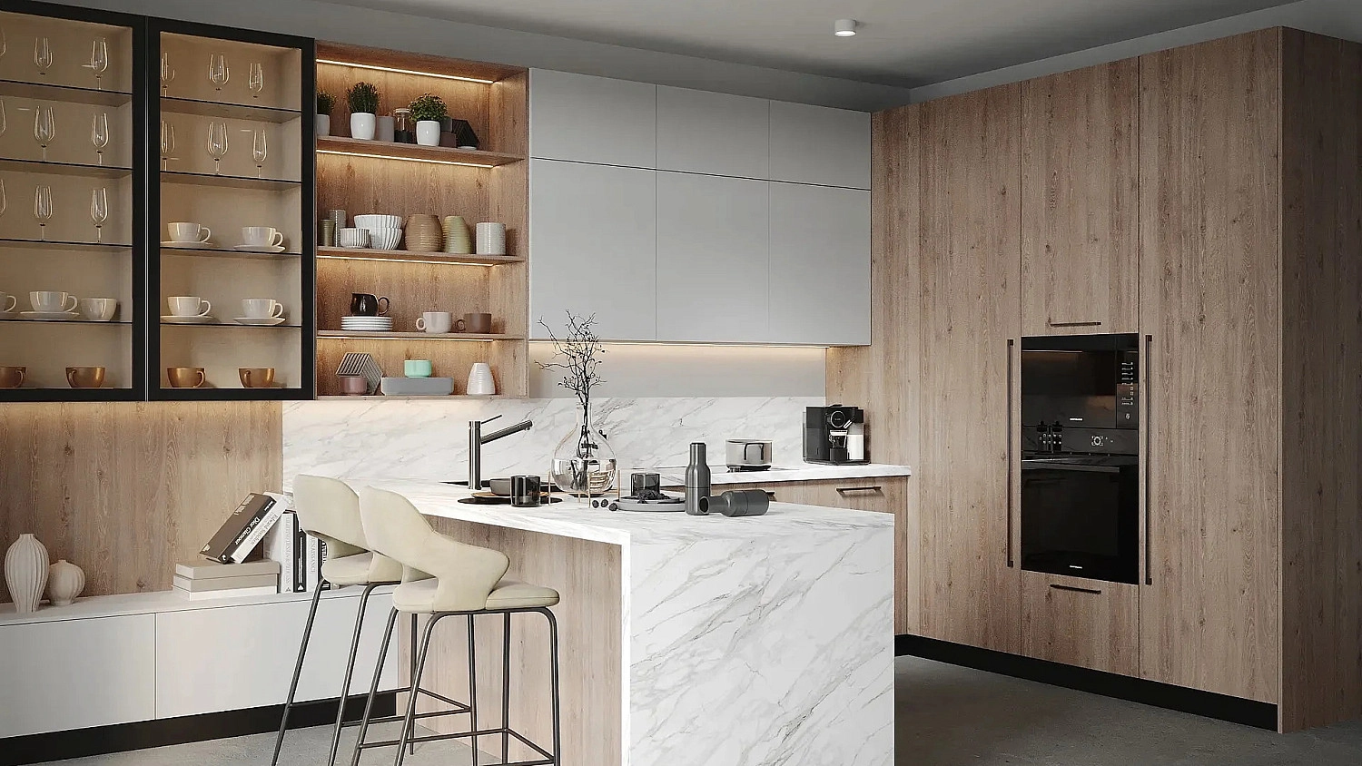 Визуализацию кухни с описанием материалов, их отличий и характеристик